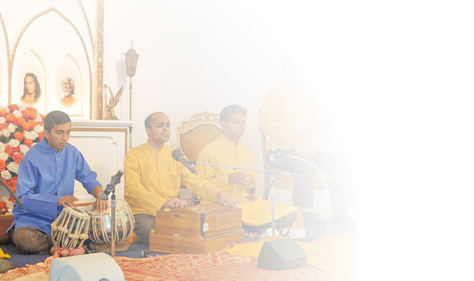*Kirtan: cantos devocionales del maestro Yogananda interpretados con instrumentos de la India como el armonio, tabla, cimbalos y cascabeles.